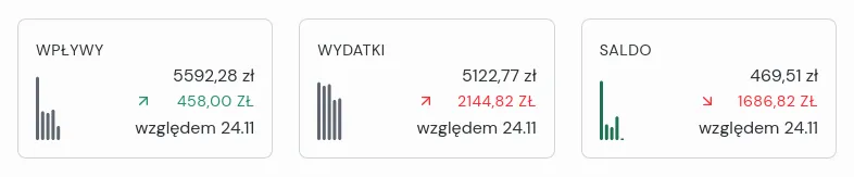 Dużą uwagę poświecam na długoterminowe trendy naszych finansów - stan poduszki bezpieczeństwa, miesięczny procent przyrostu oszczędności czy wahania w poszczególnych kategoriach. Wszystkie ważne informacje mam pod ręką w jednym miejscu - nie muszę już tracić czasu na ręczne tworzenie wykresów.